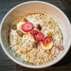 Bananen-Porridge mit Hanfsamen und Pistazien