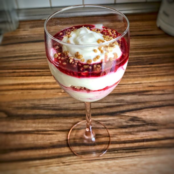 Am besten das Dessert nun mehrere Stunden im Kühlschrank durchziehen lassen.