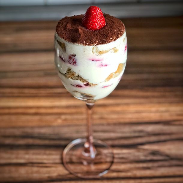 Wer möchte kann das Tiramisu vor dem Servieren noch mit etwas Kakaopulver bestäuben.