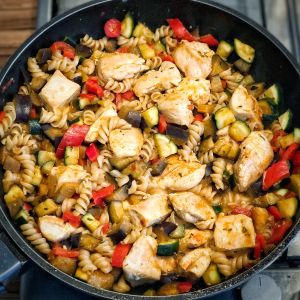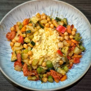 Hirse mit Zucchini-Pak Choi-Gemüse