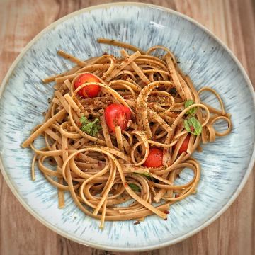 Pasta mit Zucchini-Nuss-Hanf-Soße